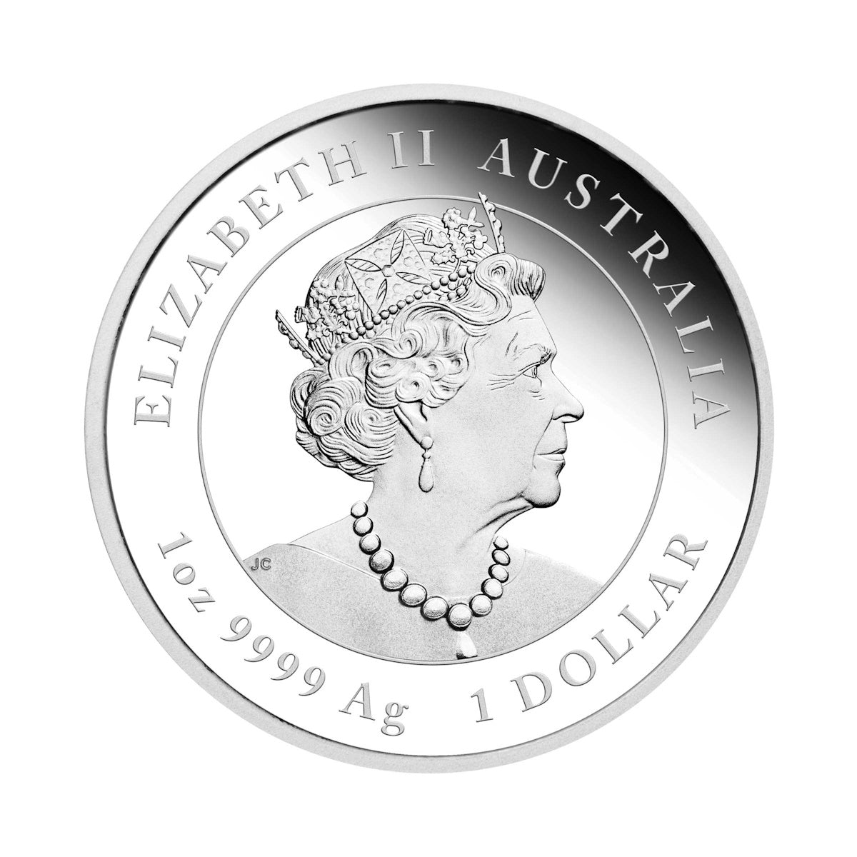 The coin portrays a coloured representation of an alert rabbit with its ears erect and another rabbit stretching towards a budding branch. Included in the design is the Chinese character for ‘rabbit’, the inscription ‘RABBIT 2023’ and The Perth Mint’s ‘P’ mintmark.
