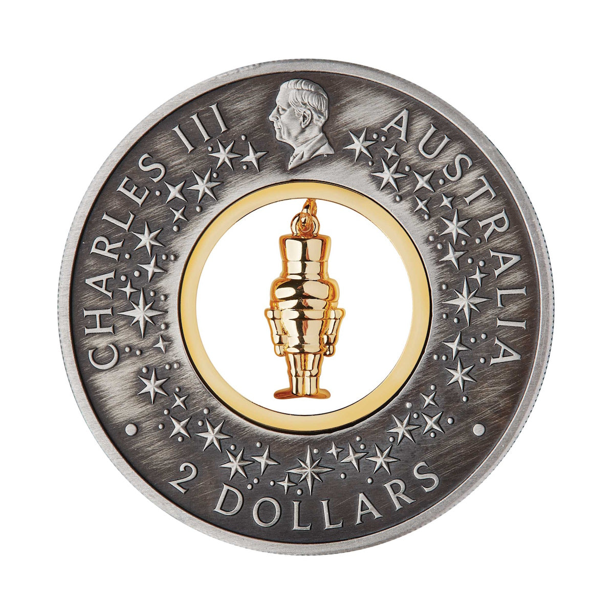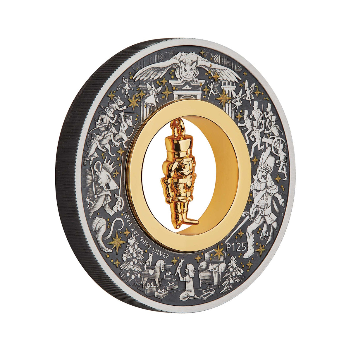 Encased in the coin’s centre is a 24-carat gold-plated representation of a nutcracker figurine, a traditional symbol of good luck also said to frighten away evil spirits.