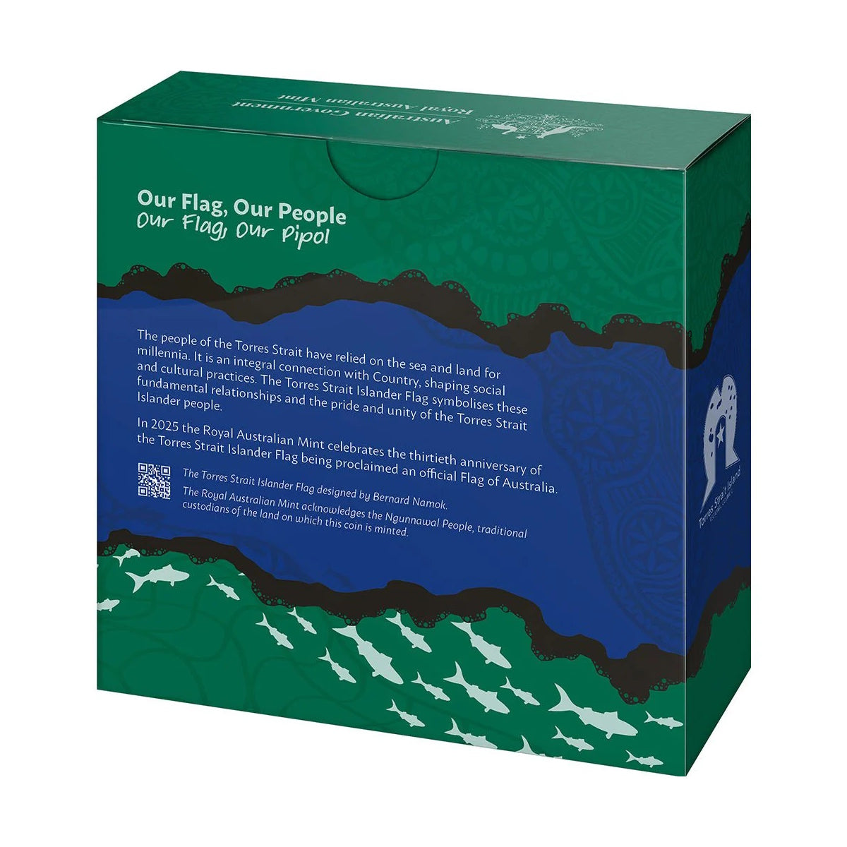 The Royal Australian Mint commemorates this significant anniversary with the release of this stunning 2025 $2 C Mintmark Coloured Fine Silver Proof Coin, which celebrates the enduring legacy of the flag and honours the rich traditions, history and contributions of Torres Strait Islander communities across Australia.