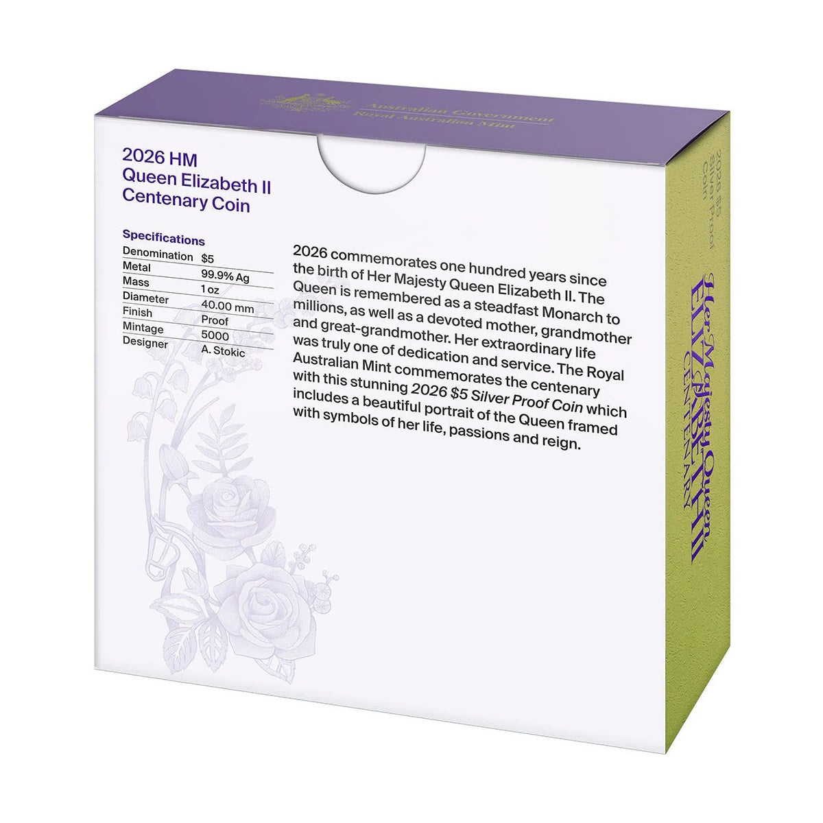 The Royal Australian Mint to proud to announce the release of this beautiful 2026 $5 Silver Proof Coin to mark the centenary of the birth of Her Majesty Queen Elizabeth II.